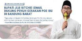 Bupati Bandung Barat, Jeje Ritchie Ismail, menyatakan dukungan penuh terhadap Gerakan Poe Ibu atau Gerakan Rereongan Sapoe Sarebu yang digagas oleh Gubernur Jawa Barat. Program tersebut mengajak aparatur sipil negara (ASN), pelajar, dan masyarakat untuk berdonasi sukarela sebesar Rp1.000 per hari sebagai bentuk solidaritas sosial.
